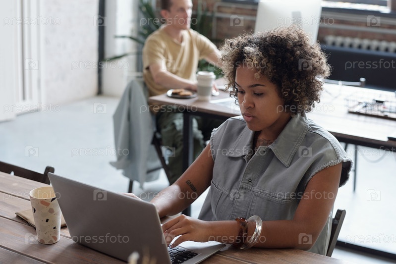 Молодая бизнес-леди из двух стран нажимает на клавиатуру ноутбука