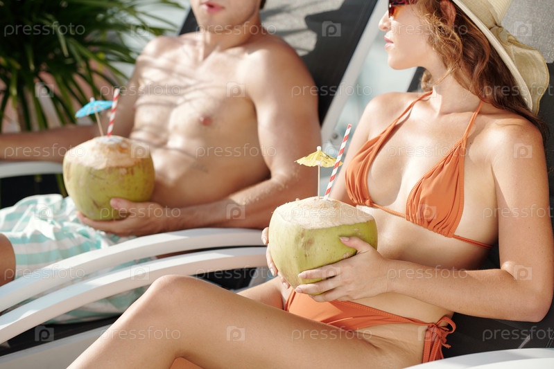 Женщина, отдыхающая у бассейна с парнем
