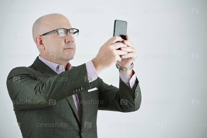 Бизнесмен делает фотографию на телефоне