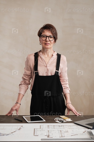 Зрелая женщина-архитектор за рабочим столом