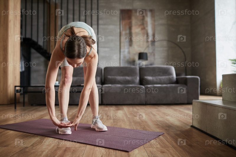 Женщина занимается физическими упражнениями дома