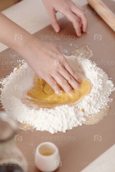 Женщина, смешивающая ингредиенты для тесто Mooncake