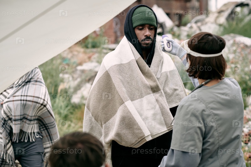 Женщина-клиницист с электронным термометром, измеряющим температуру тела