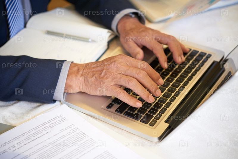 Бизнесмен, печатающий на ноутбуке