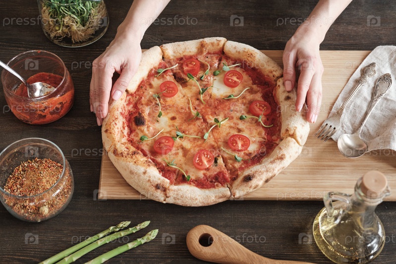 Вкусная домашняя пицца на деревянной доске