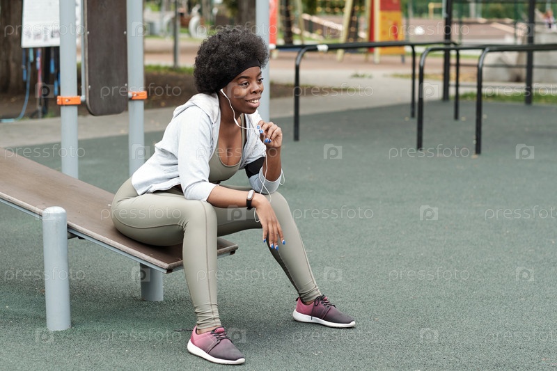Молодая спокойная спортсменка, общающаяся на свежем воздухе