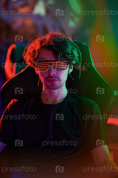 Красивый геймер в светящихся очках