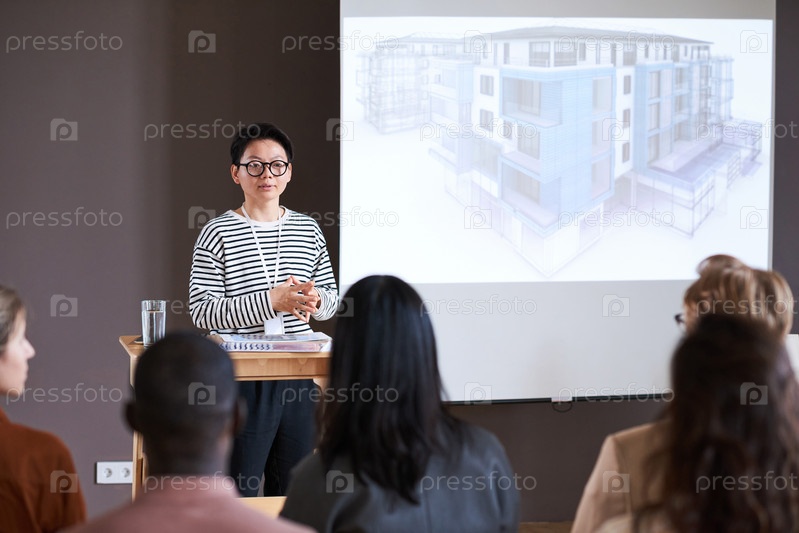 Деловая женщина, представляющая свой доклад на семинаре