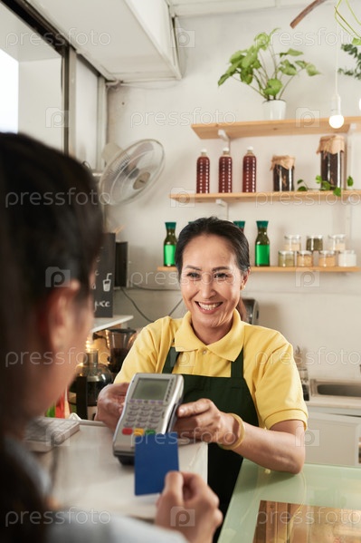 Работник кафе, принимающий оплату