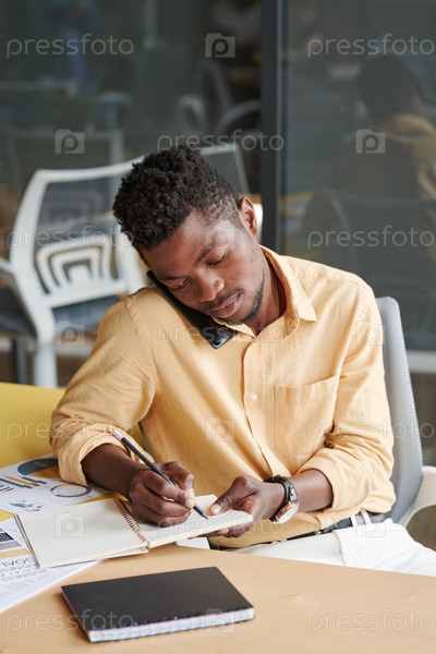 Менеджер делает заметки во время звонка клиенту