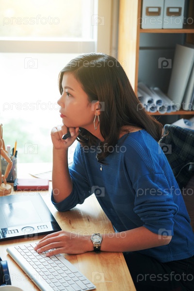 Загруженная азиатская женщина на работе