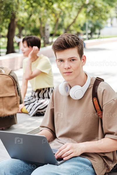 Студент, работающий на ноутбуке