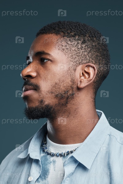 Юный афроамериканский мужчина на синей стороне Young African American Man on Blue Side View