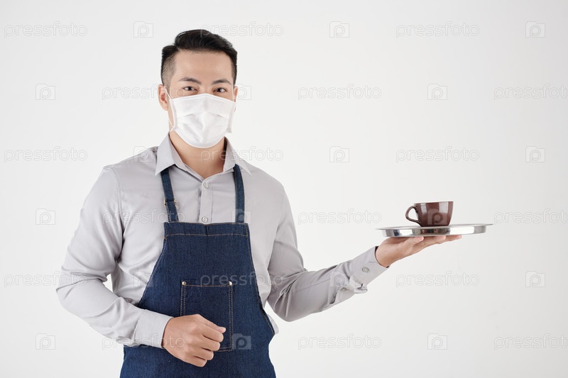 Ресторанный официант, держащий чашку капучино