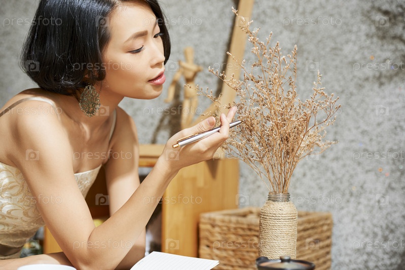 Женщина, наслаждающаяся красотой сушеных цветов