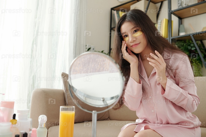Женщина, наносящая увлажняющие пластыри