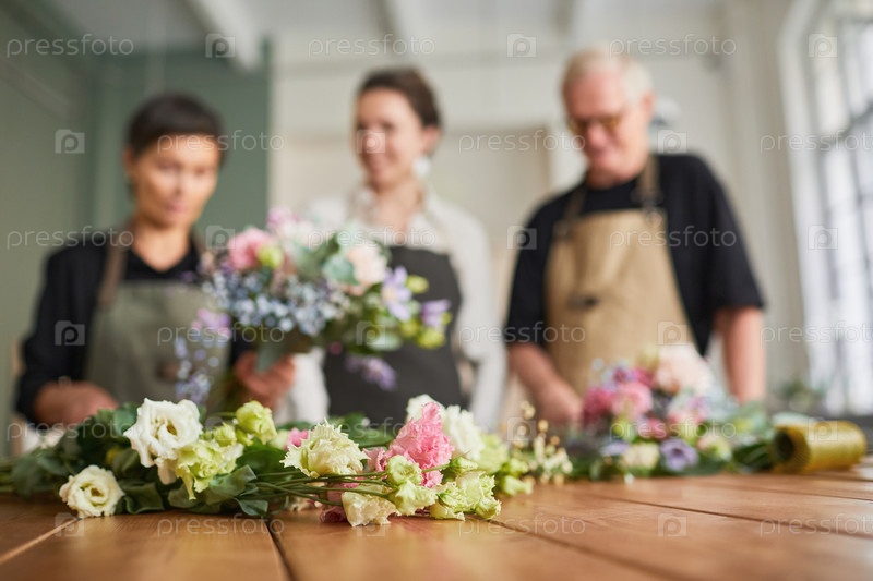 Цветочники, создающие букеты Фон
