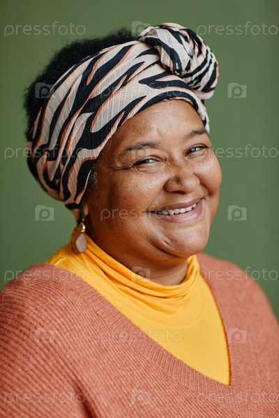 Чёрная старшая женщина, носящая платок в голове Close Up