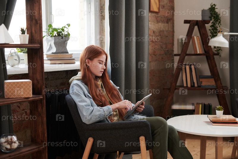 Молодая женщина использует цифровой планшет