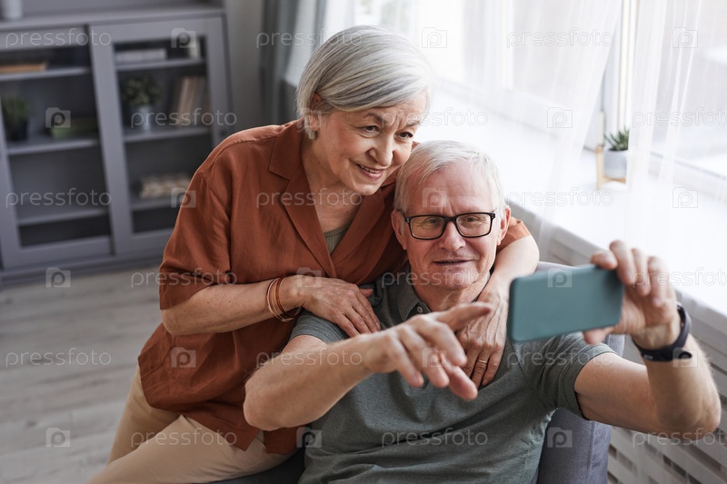 Старшая пара делает селфи