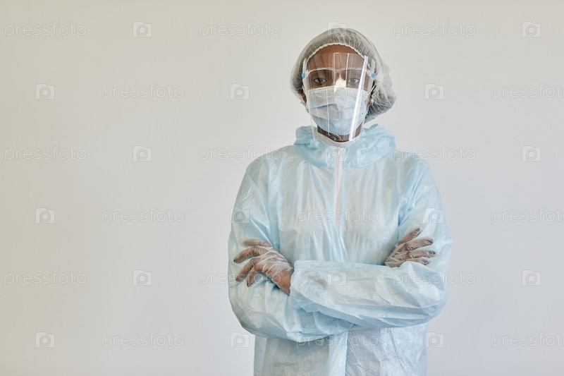 Серьезная медсестра в костюме PPE