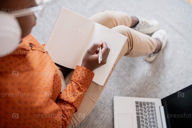 Обзор руки студента с ручкой на пустой странице