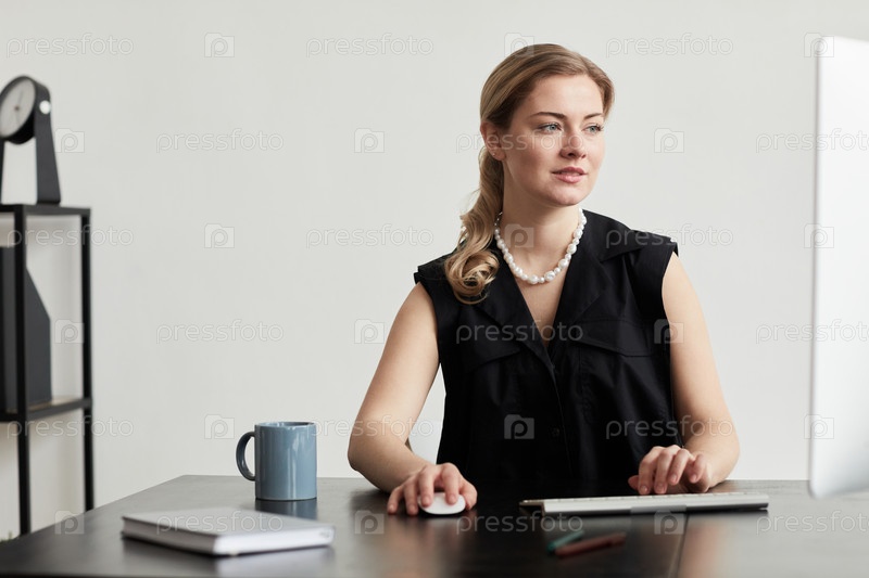 Успешная деловая женщина работает минимально