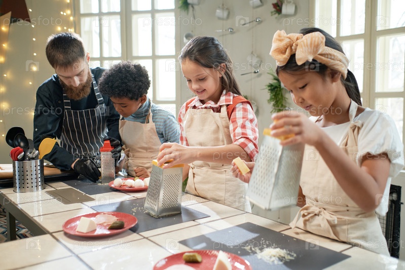 Дети учатся готовить пиццу