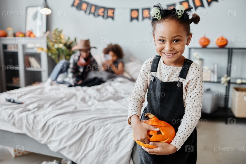 Улыбающаяся афроамериканская девушка на Хэллоуин
