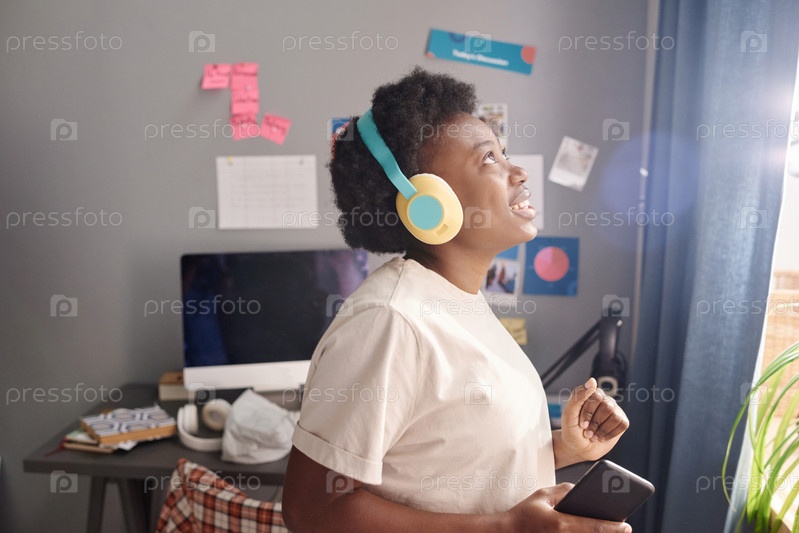 Женщина слушает музыку в наушниках