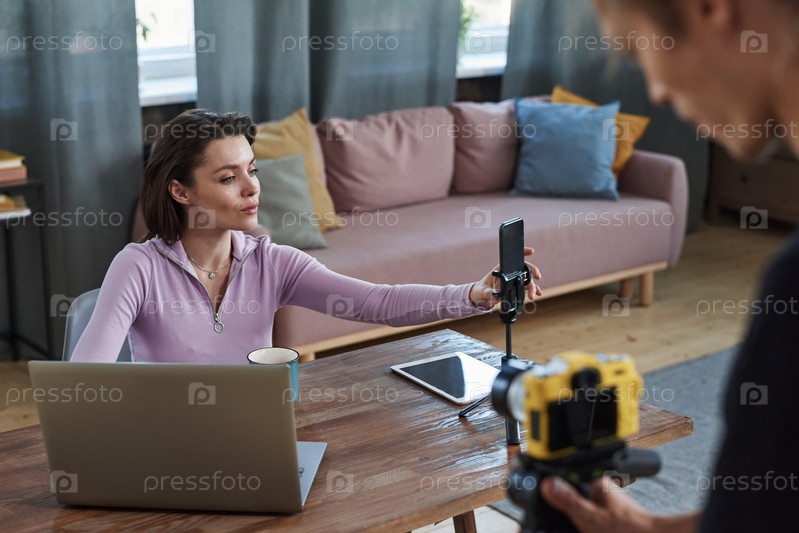 Молодые блоггеры читают комментарии во время прямой трансляции