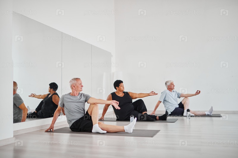 Пожилые люди, медитирующие