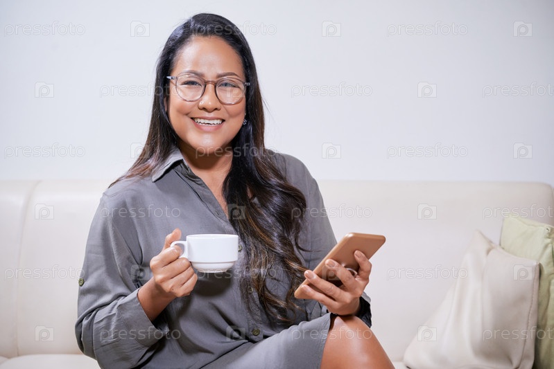 Зрелая женщина в очках счастлива