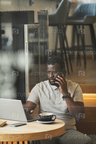 Бизнесмен, работающий в кафе Black Window View
