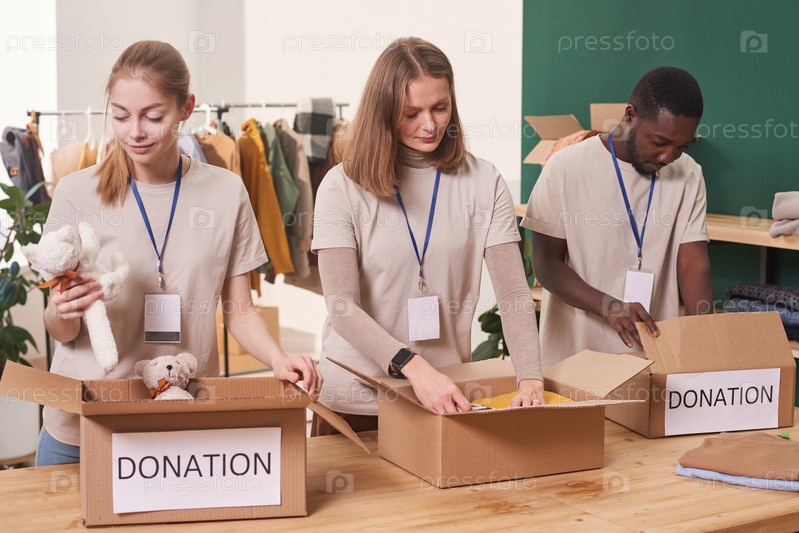Мультиэтнические волонтеры работают вместе