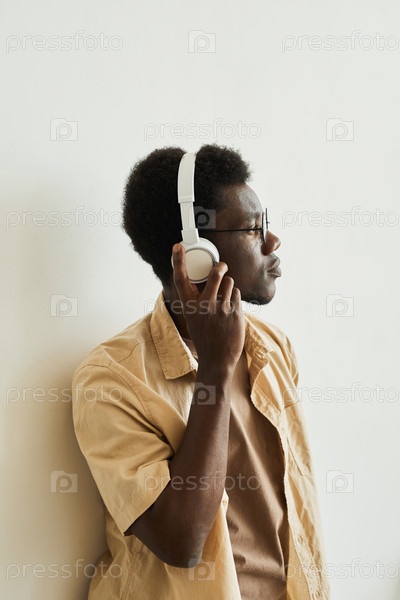 Африканский молодой человек в беспроводных наушниках