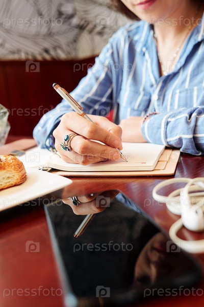 Деловая женщина, пишущая на планове
