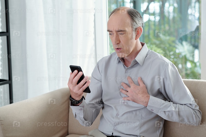 Тревожный мужчина читает текстовое сообщение тревога