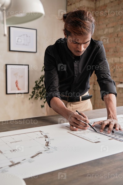 Молодой человек разрабатывает план дома