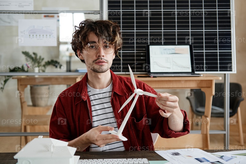 Архитектор с архитектурной моделью в офисе
