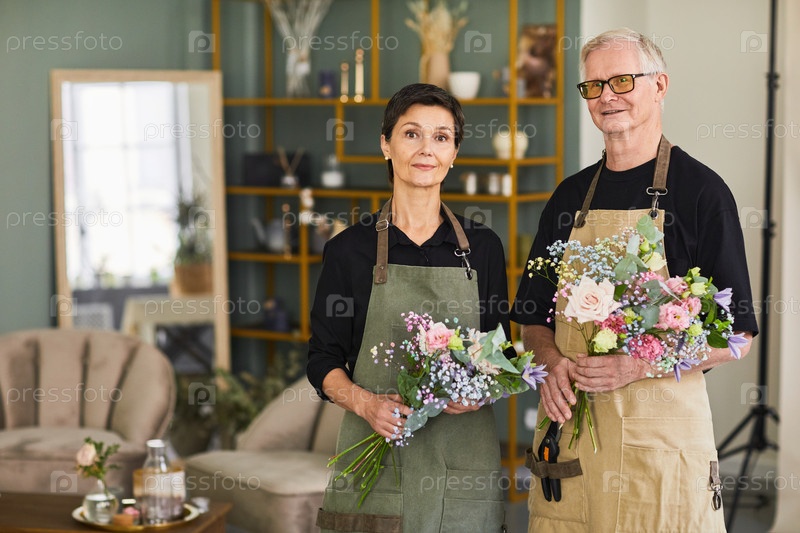 Пара старших флористов в магазине