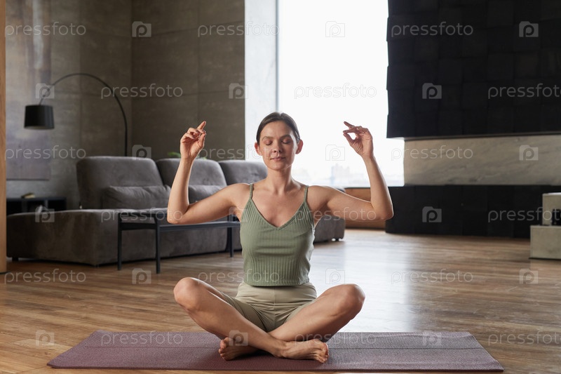 Молодая женщина медитирует дома