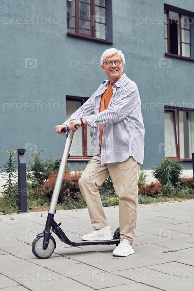 Старший мужчина едет на скутере