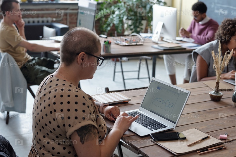 Загруженный офисный работник, сидящий за столом перед ноутбуком