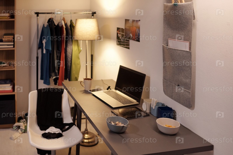 Рабочее место современного спортсмена у стены домашней комнаты