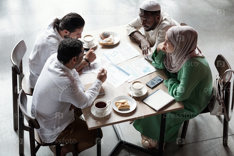 Мусульманские коллеги мозговой штурм во время обеда