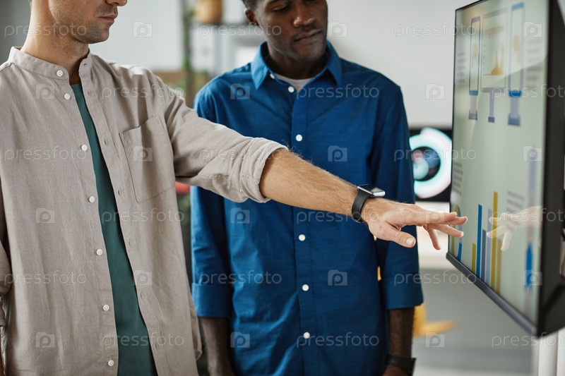 Люди, использующие цифровой экран в офисе