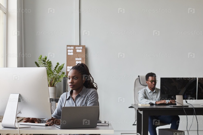 Молодые люди используют компьютеры в офисе