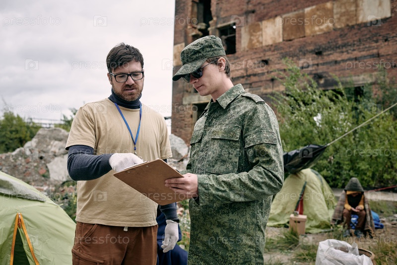 Социальный работник разговаривает с солдатом