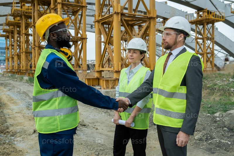 Инженеры, пожавшие друг другу руки во время строительства